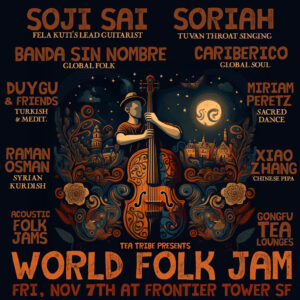 World Folk Jam events celebrate diversity and ancient traditions through world-renowned folk music and performance arts, nurturing the Bay Area’s world folk communities and fostering collaboration, friendship, and cross-cultural understanding.